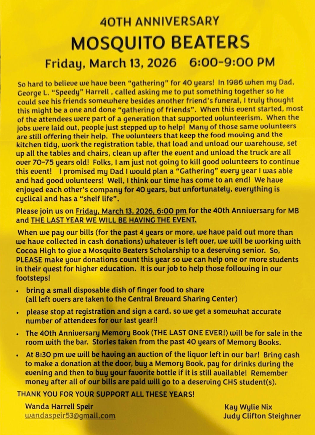 since our 60th Reunion, please send updated info to cocoahigh1964@gmail.com